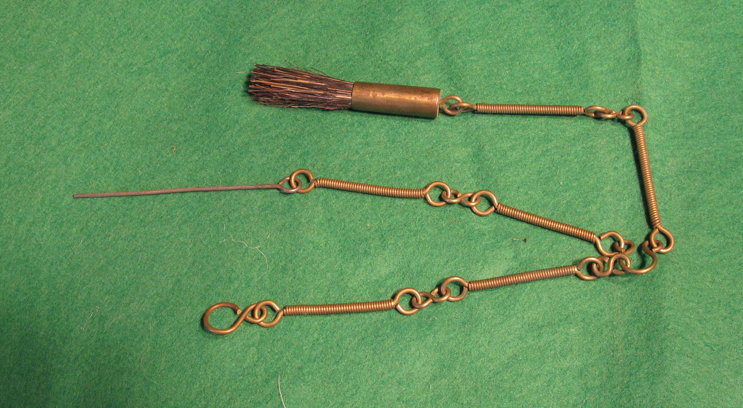 The brush was used to clean the pan of fouling material. The pick was used to clean out the touch hole. This tool is shown in Plate 22 of U.S. Military Firearms, with the M1816 Musket.