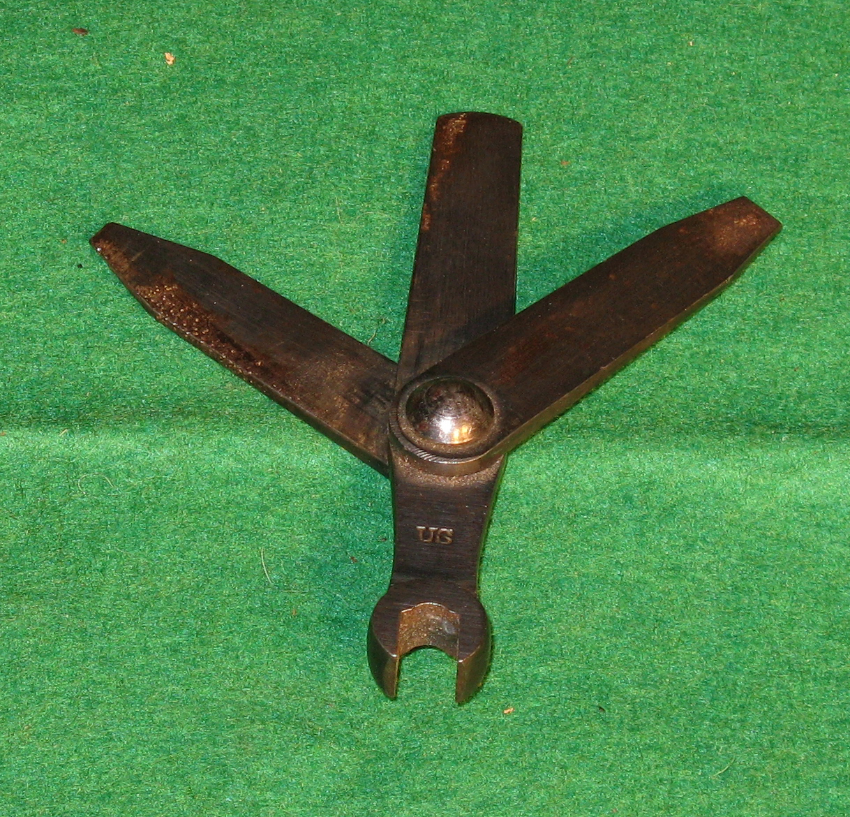 The Model 1855 Combination Tool consists of a cone wrench and 3 screwdrivers. It was adopted in 1855 with the new .58 cal. arms. It was issued along with the M1855 Band Spring and Tumbler Punch. Modifications of this tool were issued up through the M1868. (See Gun Tools, p. 156)