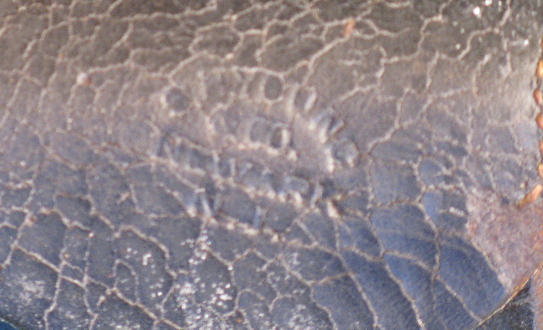 Our specimen is stamped on the back "S.H. YOUNG & CO. NEWARK N.J.". The cap pouch has an unreadable stamp on the outside flap. The fleece is intact and contains a cone pick. The buckle is brass.