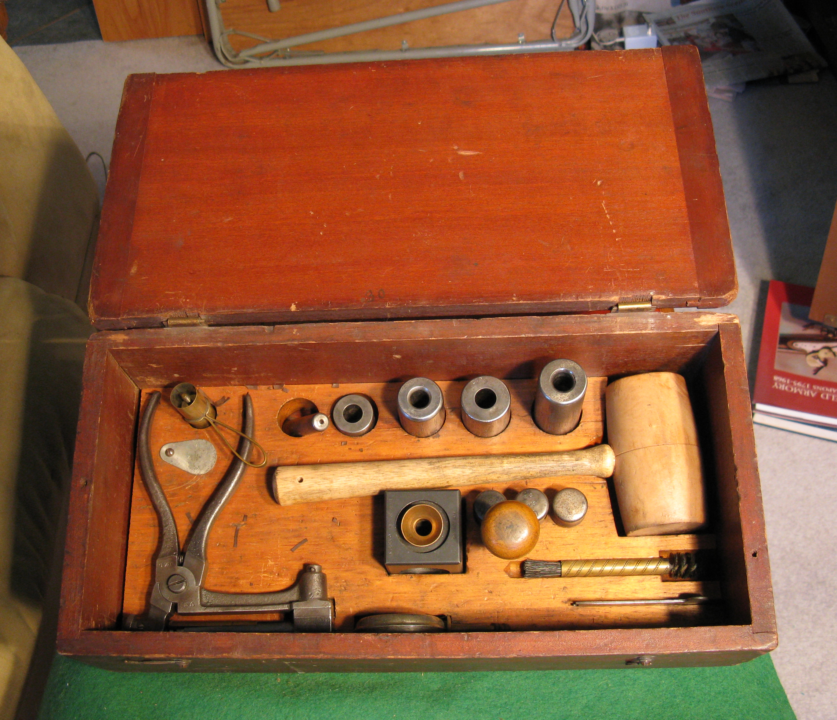 This kit contains equipment for reloading the .45 caliber rifle and carbine cartridges as well as the .45 revolver cartridge.